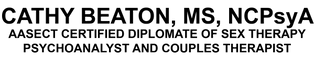 In her private practice, Cathy Beaton offers more than four decades of unrivaled professional training and clinical experience in the field of sexuality and relationships. As an AASECT Certified Diplomate of Sex Therapy, Supervisor of Sex Therapy, New York State Licensed Psychoanalyst and Connecticut Licensed Professional Counselor, she provides the highest standard of care and positive outcomes for her clients.